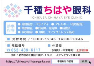 【千種ちはや眼科です】